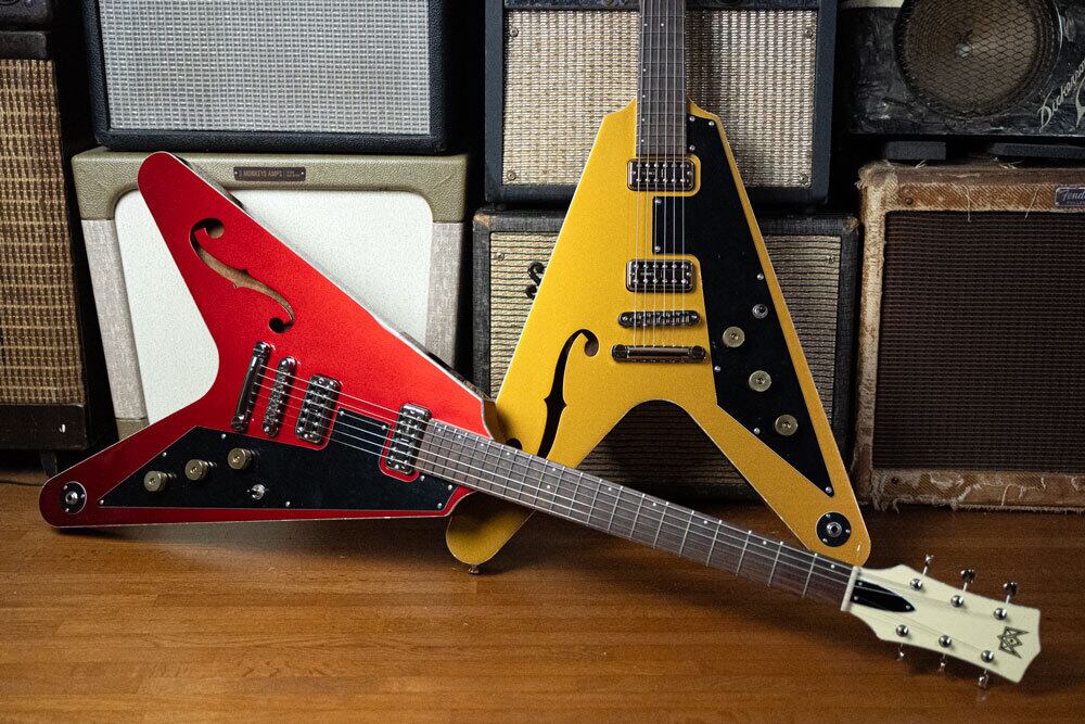 「斬新」と言う名のスパイス。異端さに溢れ、二度見してしまう程の斬新なルックス。そのルックスのみに目が行きがちであるが、そのサウンドの素晴らしさと言ったら世界最高級の位置に居る。唯一無二である。新たにデザインされセットネックとなったHOLLOW Vの2ndバージョンである。Vシェイプのホローボディ構造。通常のギターよりボディ容量が大きく、それによりそのサウンドは恐ろしく豊かである。楽器が持つトーンは甘くスワンプである。その甘いトーンにT.V. JONES P.U.のソリッド感が相まり、プラグドされた音は、極上のロックサウンドを醸し出す。リア・ピックアップ時でここまで太く甘いサウンドは唯一無二である。このモデルでしか出し得ない濃厚なトーン、そして異端さに溢れたルックス。歴史的に見て、名を馳せたアーチストは皆、決定的 な「個性」を持つ。楽器がそれを担う事が出来るのは、このHollow Vかも知れない。カルチャーを創る異端者よ、是非手に取って頂きたい。