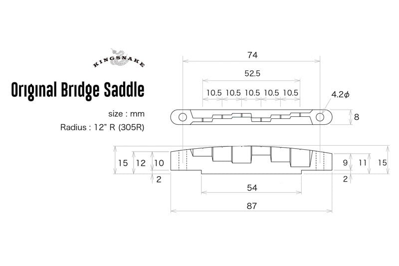 KING SNAKEオリジナル製作したブラス製ブリッジサドル。